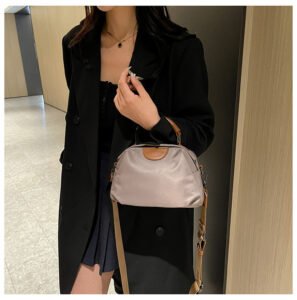 Portable Nylon Cloth with Cowhide Shoulder Bag (Gray)