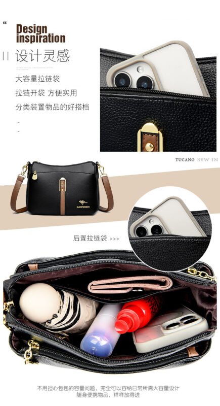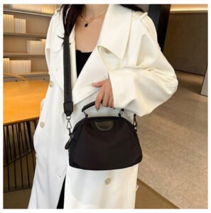 Portable Nylon Cloth with Cowhide Shoulder Bag (Black)