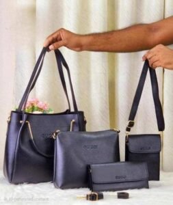 4 pcs combo ladies fashionable multipurpose leather bag (Black)