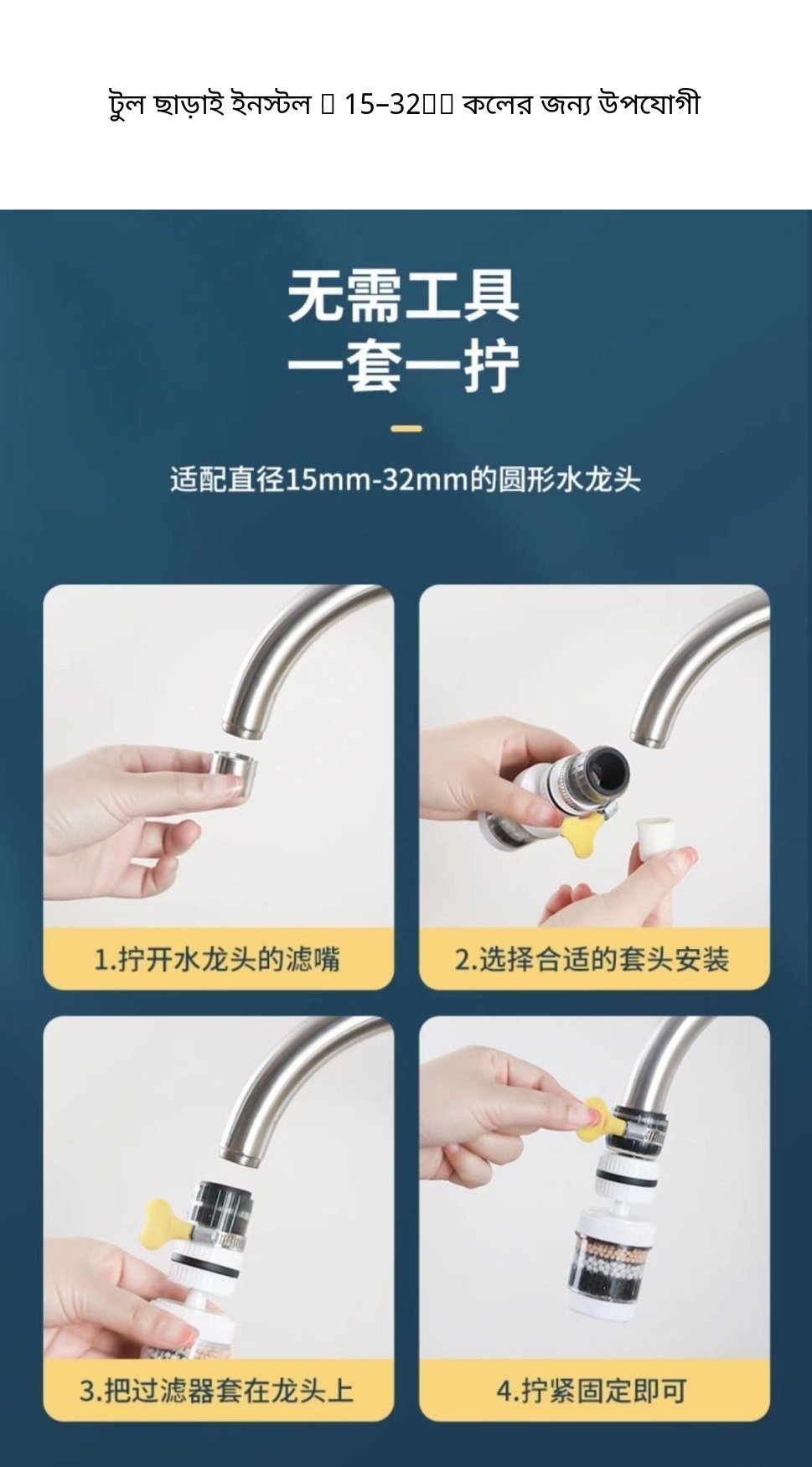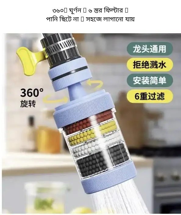 ৪ পিস- 6 Layers Water Filter Tap ( 360° রোটেটেবল )