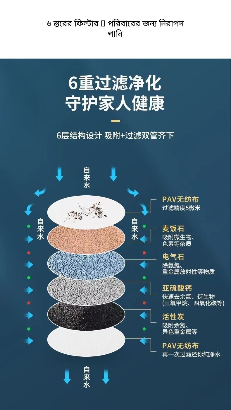 360° রোটেটেবল 6-লেয়ার ওয়াটার পিউরিফায়ার ফিল্টার