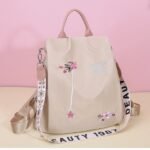 2026 New Large Capacity Guofeng Embroidered Women’s Anti-theft Casual Backpack (Off White)