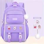 Children Primary Waterproof School Bag (Purple)