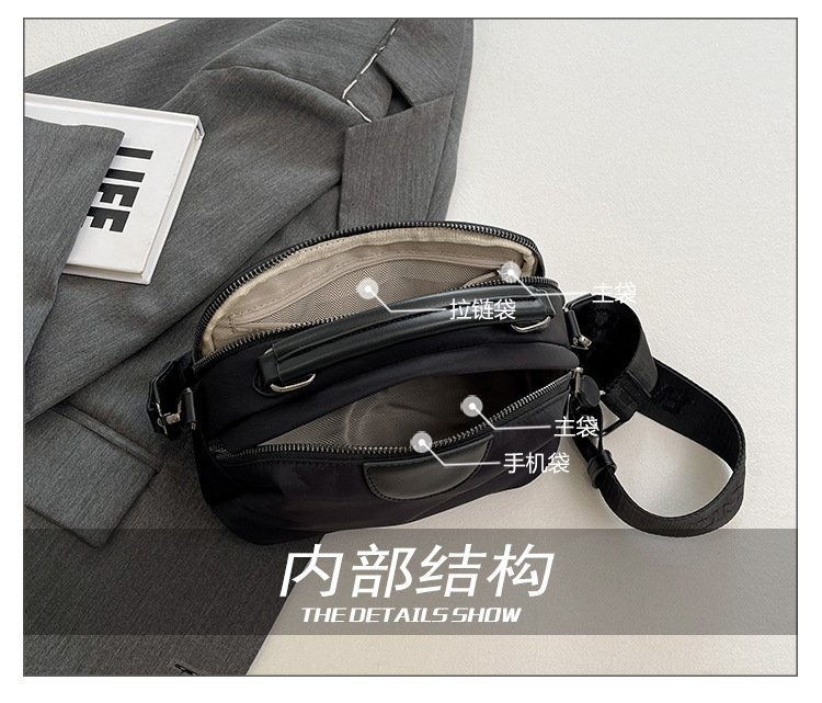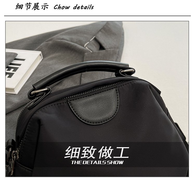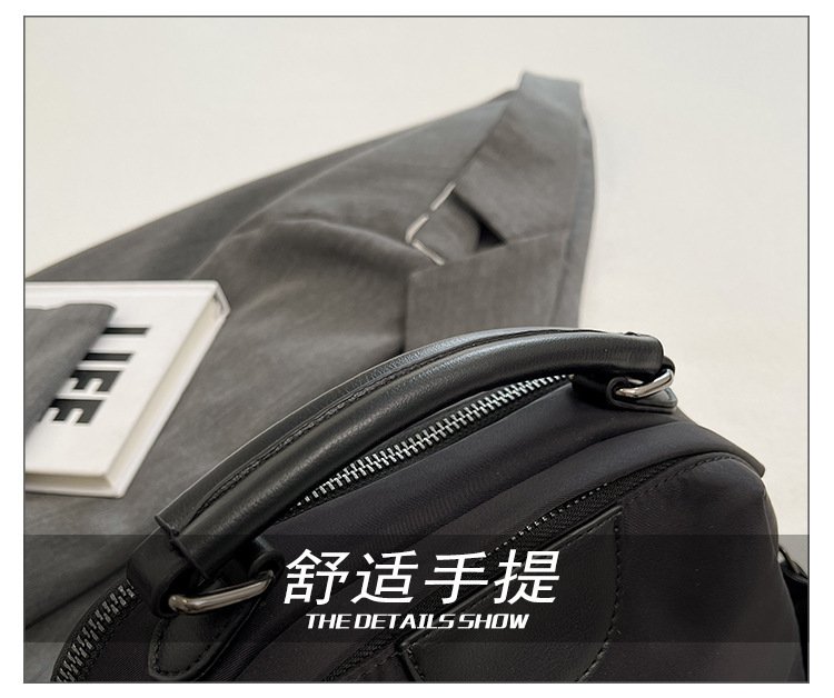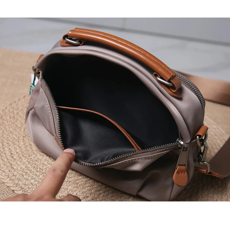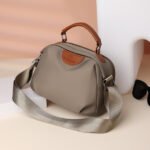 Portable Nylon Cloth with Cowhide Shoulder Bag (Gray)