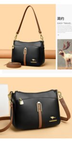 Pu Leather Women’s Bag Simple Contrast Color Middle-aged Mother’s Shoulder Bag & Crossbody Bag (Cream)
