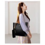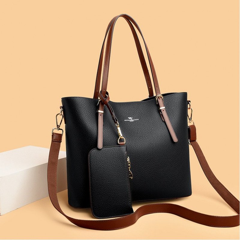Tote Leather Women’s Bags Mother Single Shoulder Slanting Bags (Black)